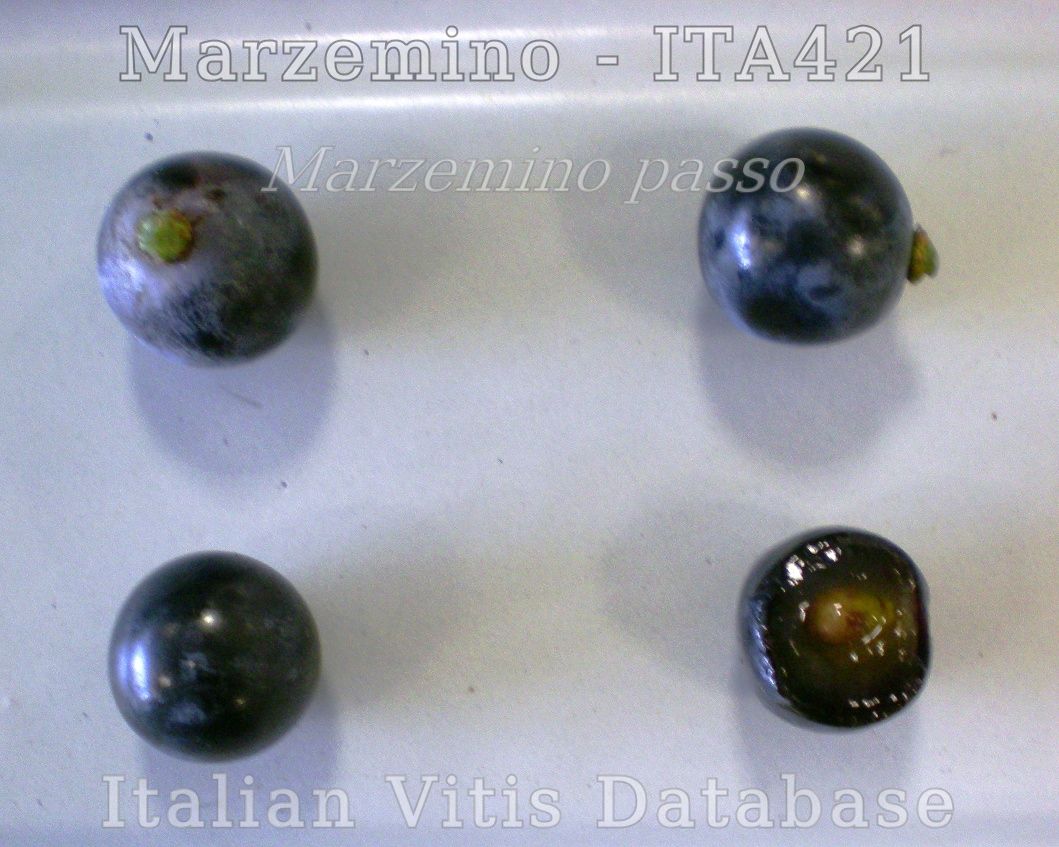 Antonelli A., Bignami C., Imazio S., Masino F., Matrella V., Montevecchi G., Vasile Simone G., 2015. Marzemino passo. In: Italian Vitis Database, www.vitisdb.it, ISSN 2282-006X