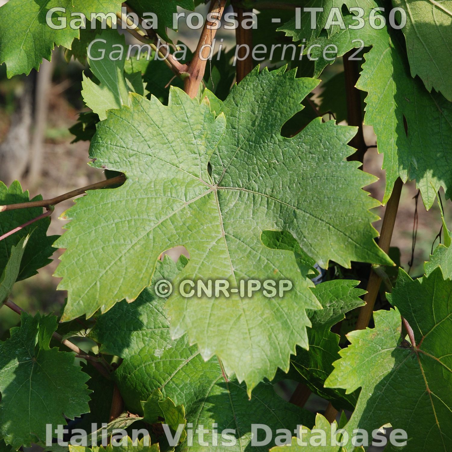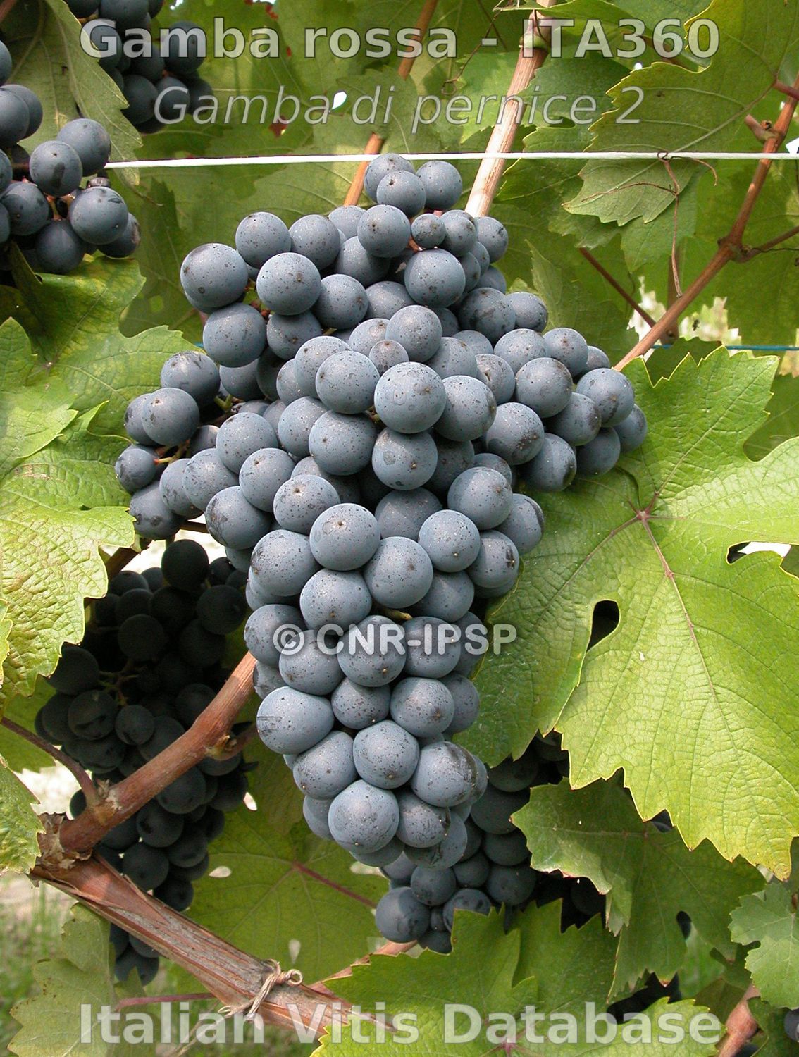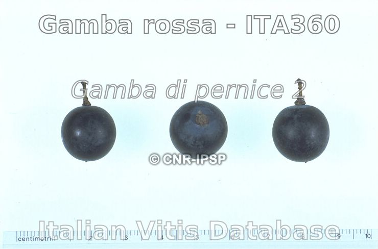 Raimondi S., Ruffa P., Ferrandino A., Schneider A., 2014. Gamba di pernice 2 ITA360-553 (Gamba rossa). In: Italian Vitis Database, www.vitisdb.it, ISSN 2282-006X