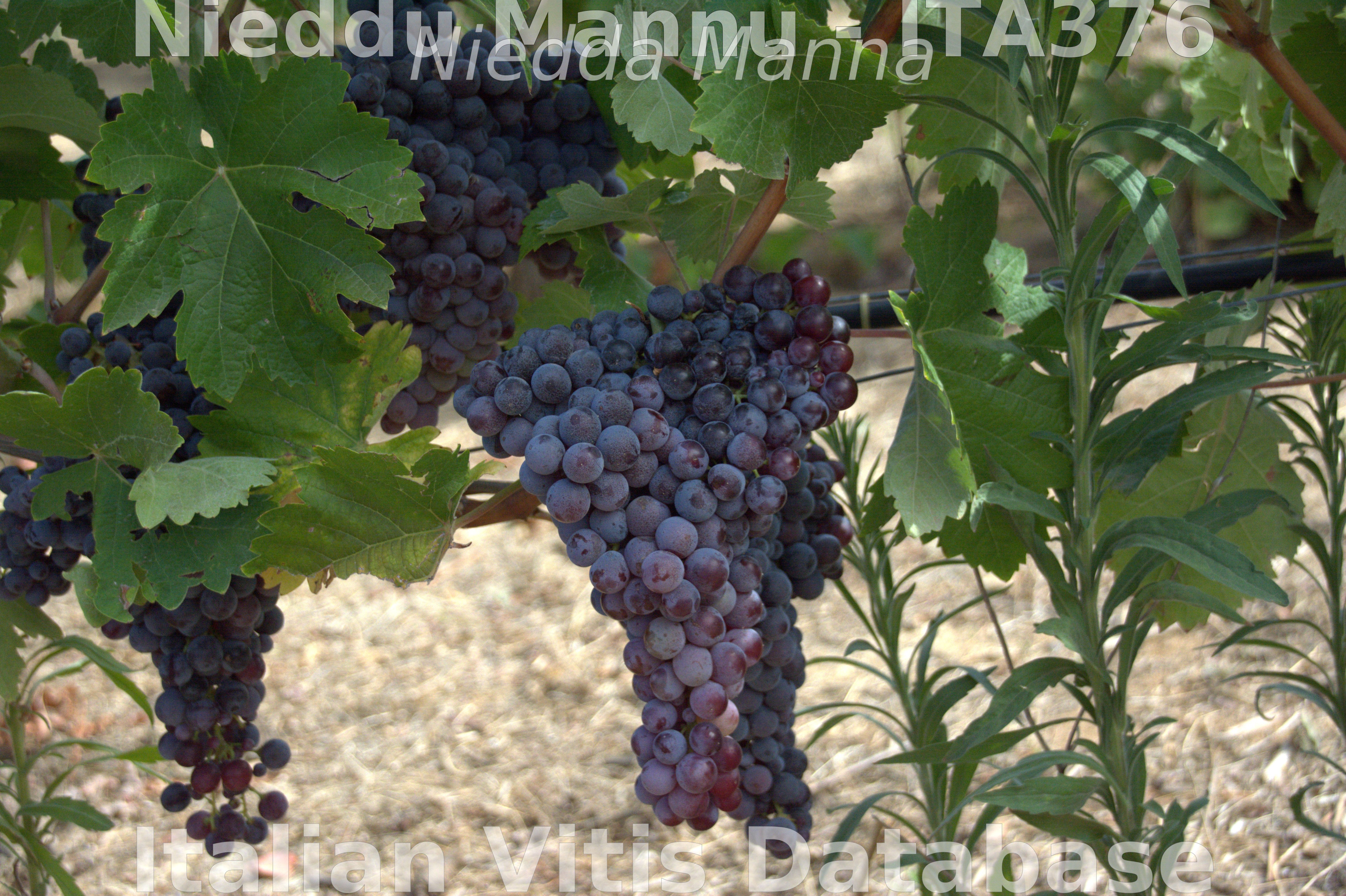 Vitigno diffuso in tutta l’isola. Il suo nome (che tradotto dal sardo significa “Uva nera grande”) è stato talvolta, anche se meno frequentemente, utilizzato anche per altre varietà caratterizzate da grappolo piuttosto grande, come il Pascale, ad esempio, o il Monica. Il Manca dell’Arca lo cita come Nieddu mannu. Alcuni anni più tardi il Moris cita una “Vitis vinifera ‘acidula’, in sardo ‘Manzesu’ tra le uve bianche. Il Cara, qualche anno più tardi, attribuisce questo ad una svista e suppone che il Moris abbia descritto in realtà l’uva bianca Erba posada. Avendo trovato, nel corso del progetto AKINAS, nell’area meridionale della Sardegna delle accessioni di Manzesu caratterizzate da acini rossi debolmente colorati, avanziamo l’ipotesi – considerando anche le altre caratteristiche ampelografiche descritte dal Moris riguardo al Manzesu – che il botanico abbia descritto proprio il Manzesu – Nieddu mannu. Questo vitigno, a parità di ampelografia e caratteristiche genetiche, si presenta con una variabilità elevatissima, in termini di colorazione delle bucce, con le accessioni individuate nel Campidano che risultano essere nella migliore delle ipotesi adatte per la produzione di vini rosati. Più ricche in antociani e polifenoli sono risultate essere le accessioni ogliastrine e ancora più ricche quelle del Mandrolisai e, soprattutto, due stupefacenti accessioni provenienti dal Barigadu capaci di dare vini rossi. Queste diverse caratteristiche possono essere dovute a diversa azione selettiva da parte dell’uomo. Il Niedda manna, o Amantosu, è riportato dall’Angius praticamente in tutta l’isola. E’ stato oggetto di intensa attività sperimentale dal parte del Vivaio Regio di Macomer a cavallo tra la fine del XIX e l’inizio del XX secolo.