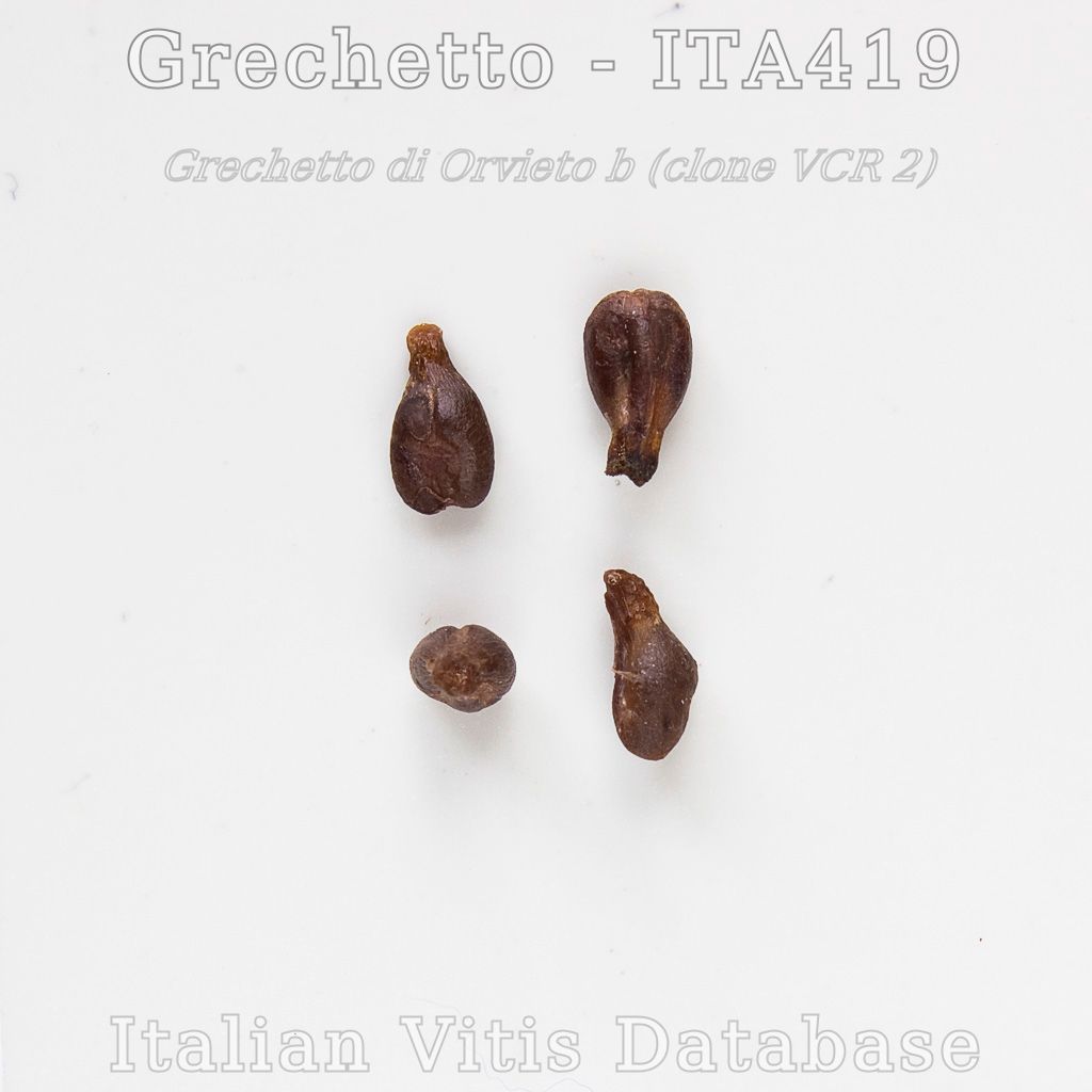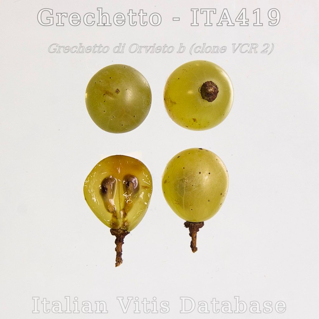 Uno dei più noti sinonimi del vitigno iscritto al Registro Italiano delle Varietà di Vite come 'Grechetto B' è il 'Grechetto di Orvieto', che è distinto dal 'Grechetto di Todi' che invece è sinonimo del 'Pignoletto' (Filippetti et al., 1999), con il quale ha una relazione di parentela genitore-figlio (Costacurta et al., 2004).