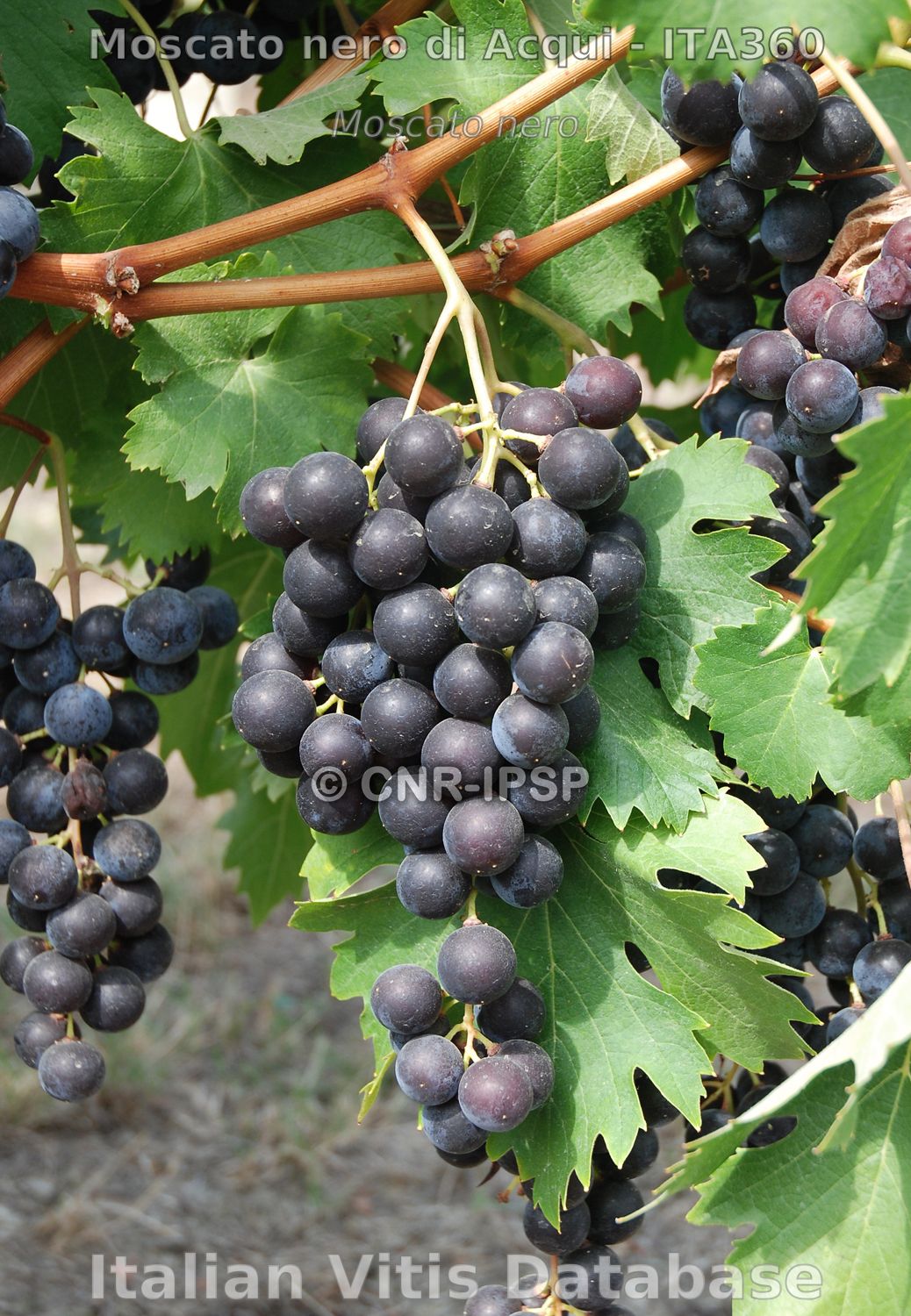 Di questo vitigno, iscritto nel Registro Nazionale delle Varietà di Vite dal 1971, non esiste una descrizione ufficiale redatta dal Ministero. Ciò nonostante, ci è sembrato di poterlo certamente identificare con la cultivar un tempo coltivata nell’Acquese con il nome di Malaga o Moscato nero e presente con questo nome in numerose altre aree del Piemonte. Le caratteristiche morfologiche peculiari di questa varietà permettono inoltre di supportarne la corrispondenza con il Moscato nero rosato (cioè ad aroma di rosa) descritto da Demaria e Leardi (1875) per il Tortonese e l’Alessandrino. In opere di autori quali Gallesio (1995, postuma), Di Rovasenda (1877) e Molon (1906) non è possibile invece riconoscere con certezza questa cultivar in uno dei vari Moscati ad uva nera omonimi citati, tra cui la mutazione a bacca nera del Moscato bianco, oltre all’Aleatico e a un non meglio identificato Montepulciano.