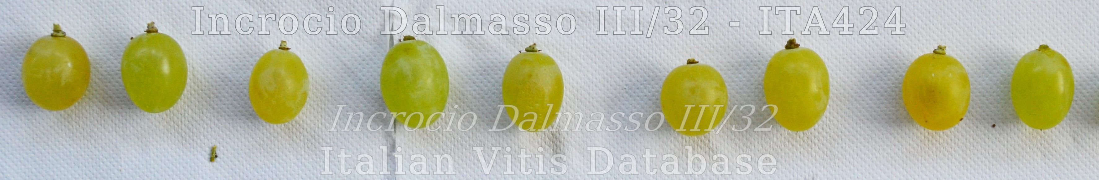 Carlomagno A., Ferrandino A., Kedrina O., Ruffa P., Raimondi S., Novello V. (2014) – Incrocio Dalmasso III/32. In: Italian Vitis Database, www.vitisdb.it, ISSN 2282-006X