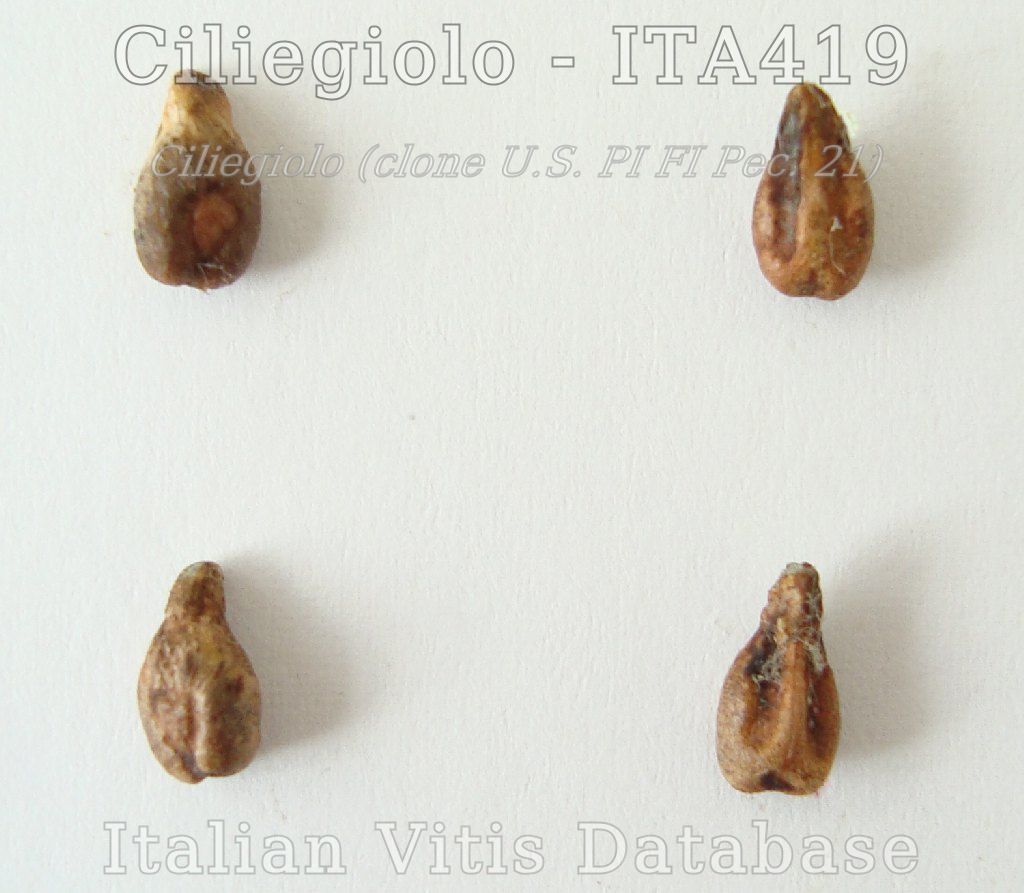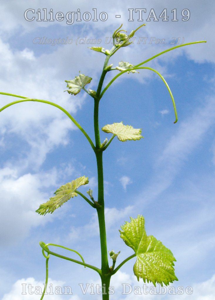Recent molecular studies have shown that this variety has a direct relationship (parent-child type) with Sangiovese and Moscato violetto (Vouillamoz et al., 2001, 2004; Di Vecchi et al., 2007; Cipriani et al., 2010).